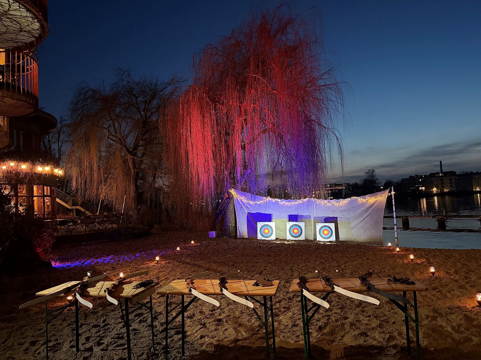 Zum Teamevent oder Weihnachtsfeier in Hamburg nicht einfach nur futtern gehen, sondern den Abend mit einem gemütlichen Bogenschießen im Fackelschein und Glühwein einstimmen.